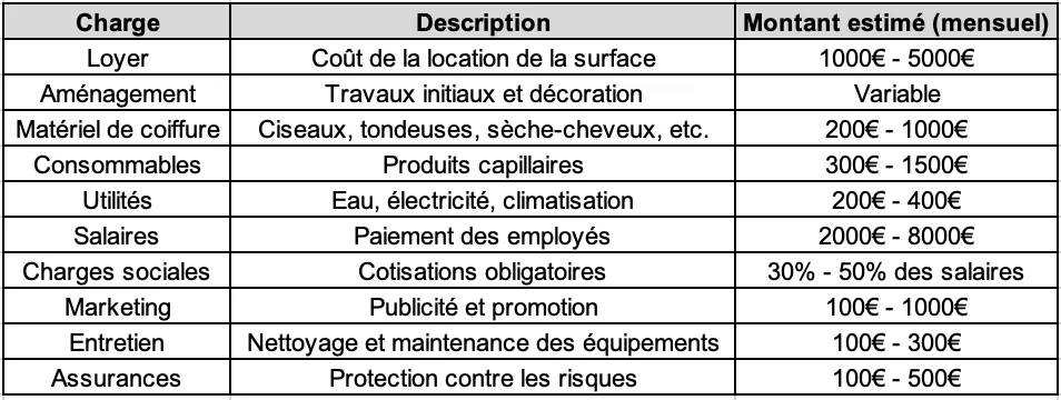 Quelles sont les charges à prévoir pour un salon de coiffure ?
