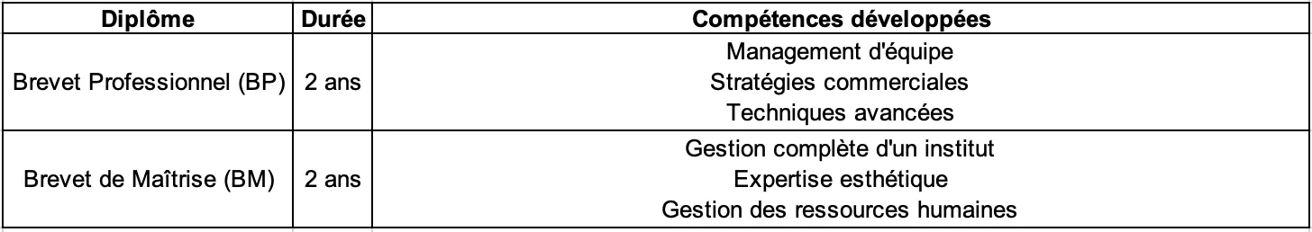 Ce diplôme de niveau Bac +2 vous prépare à piloter des projets commerciaux ambitieux et à gérer efficacement toutes les dimensions de votre futur institut.